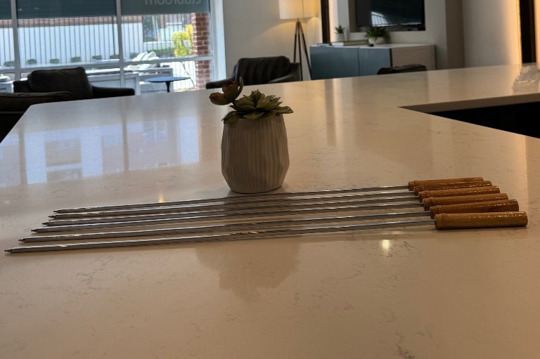 Each skewer features a wooden handle that stays cool, offering a safe and comfortable grip. The sharp tips make piercing food easy, while the sturdy build ensures even cooking. Ideal for backyard BBQs, camping, hiking, picnics, or any outdoor cooking adventure.