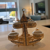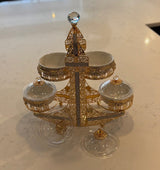 E23 - Elegant Gold Serving Tray with 4 Ceramic Bowls & Lids