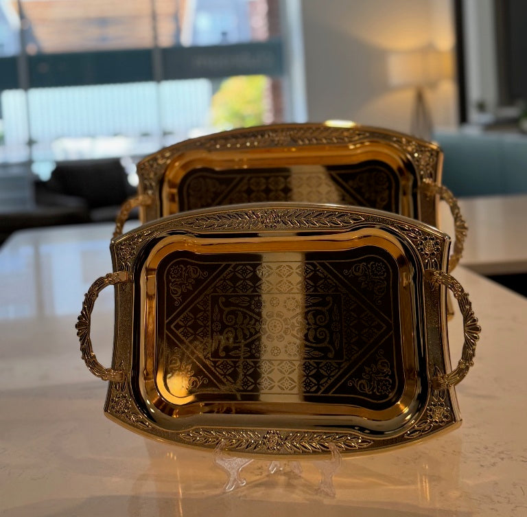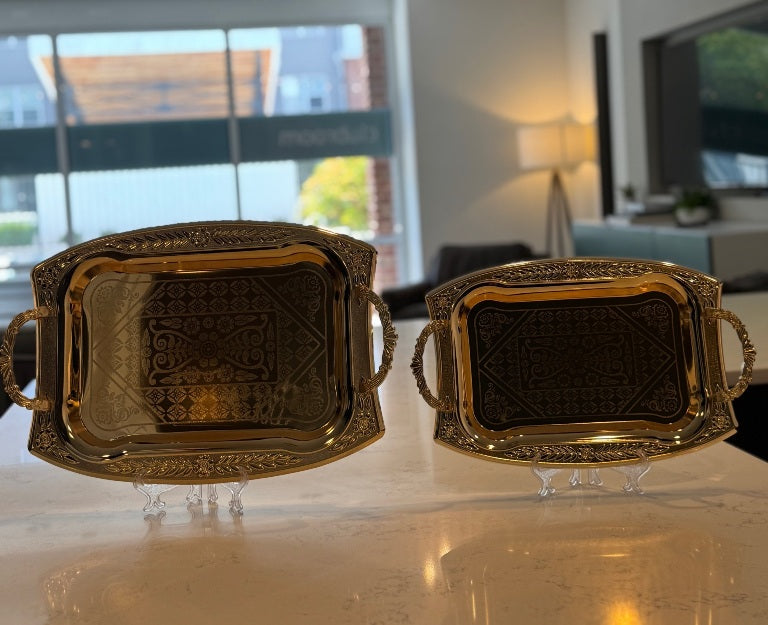 l34 - 2-Piece Stainless Steel Serving Tray Set – Royal Gold Finish